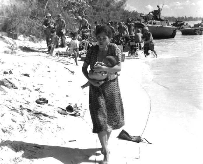 Amikor az amerikai tengerészgyalogosok partra szálltak, a japán hadsereg hamis híreket terjesztett a helyi lakosok között: az amerikaiakat szörnyetegként ábrázolták, akik megkínozzák és megerőszakolják a civileket. A félelem pánikot és végül tömeges öngyilkossági hullámot váltott ki.