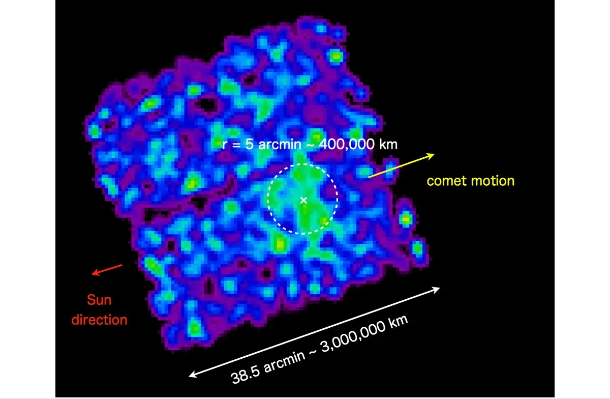„Amikor ez a gáz kölcsönhatásba lép a Napból áramló energikus töltéssel rendelkező részecskék áramával – a napszéllel –, egy töltéscsere-reakciónak nevezett folyamat játszódik le, amely jellegzetes röntgensugárzást hoz létre” – írják a kutatók azt is hozzátéve, hogy
