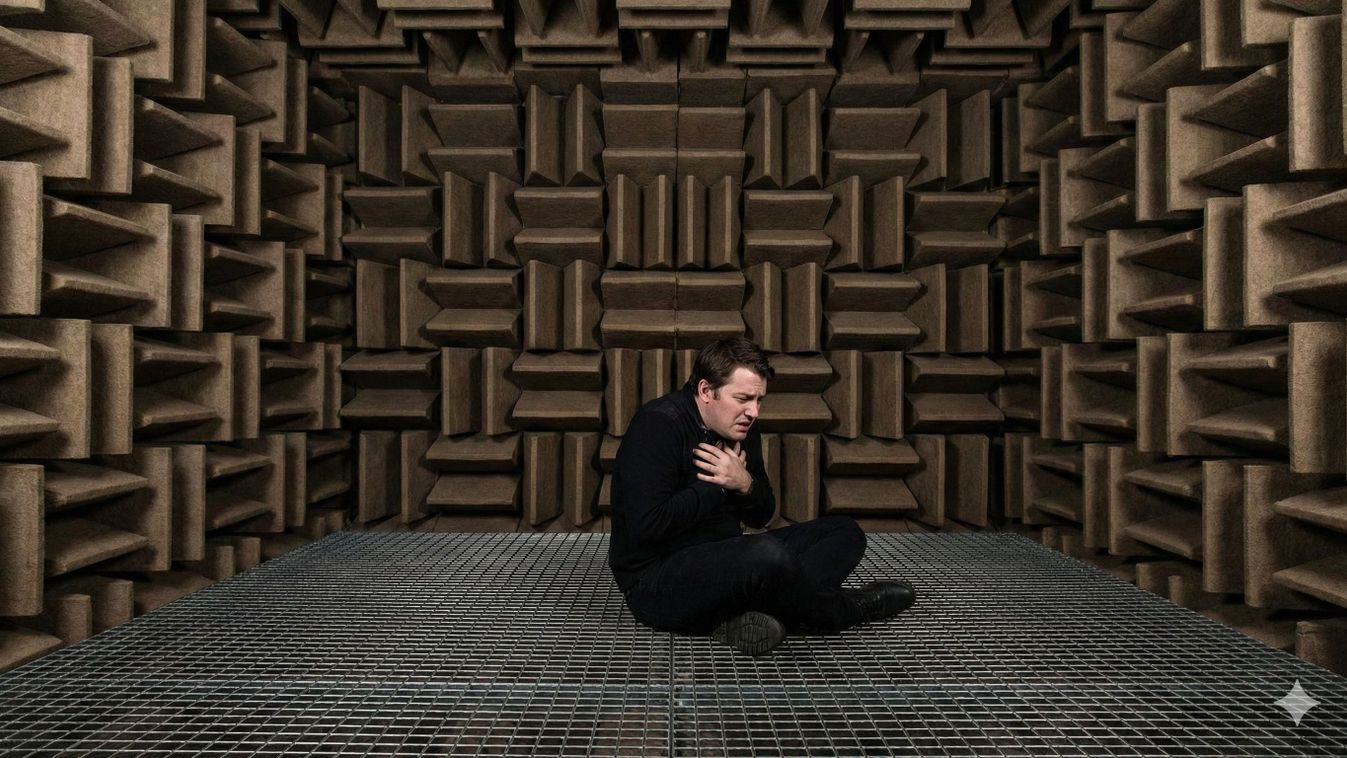 Aki néhány percnél tovább marad, elkezdi hallani a gyomrát, a szívdobogását, a lélegzetét, és mindkét füléből mély hangú zümmögést érzékel. Az elszigetelt kamrát hat réteg beton és acél veszi körül, ami nemcsak blokkolja a külvilág hangjait, hanem a belső üvegszálas, speciális hangelnyelő tüskék rögtön el is tüntetik a sajátjainkat, mielőtt még visszhangozhatnának: a világ legcsendesebb szobájában a szívdobogásunk is elviselhetetlen.