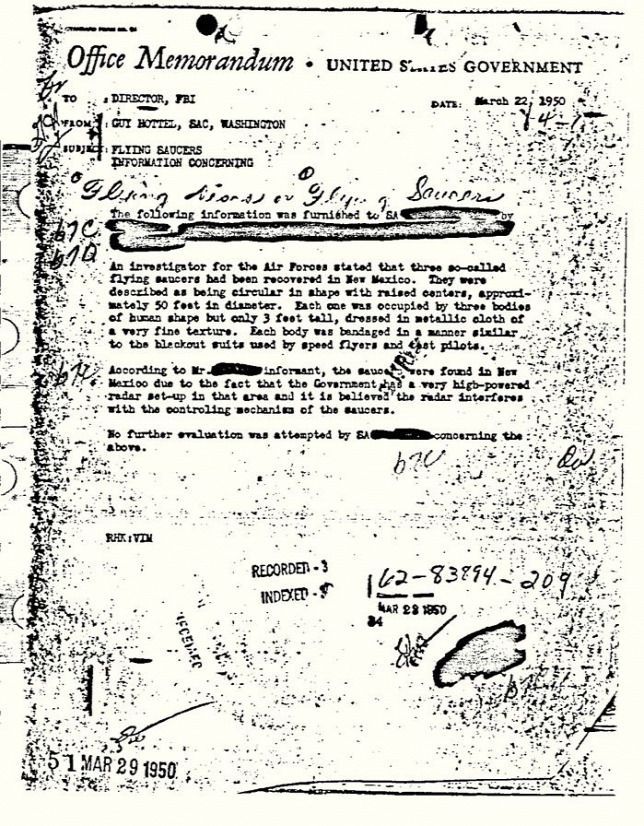 Az Új-Mexikóban, a Foster Ranchon lezuhant eszköz egy valódi és ismeretlen eredetű jármű volt, amelyről megállapították, hogy nem emberi konstrukció.”